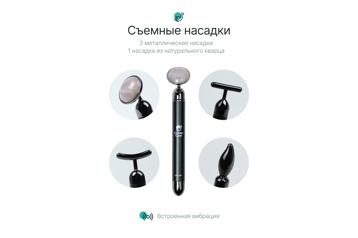 На сегодняшний день роллер для лица стал неотъемлемой составляющей уходовых домашних процедур во всем мире. Список мгновенных и долгосрочных результатов, которые получают люди, включает в себя: разглаживание и подтягивание кожи, ее осветление, уменьшение морщин и другие антивозрастные преимущества. В наборах CleverCare сочетаются как кварцевые насадки, так и металлические, созданные для различных техник воздействия под разные участки лица и зоны декольте. Эффект вибрации многократно усиливает эффект, разгоняя лимфу и снимая напряжение. Для работы вибро режима необходима 1 батарейка АА, не входящая в комплект. Подробную инструкцию по применению и описание каждой насадки на русском языке вы найдете на упаковке набора. Всего 5-10 минут использования в день и ваша кожа будет подтянутой и сияющей.