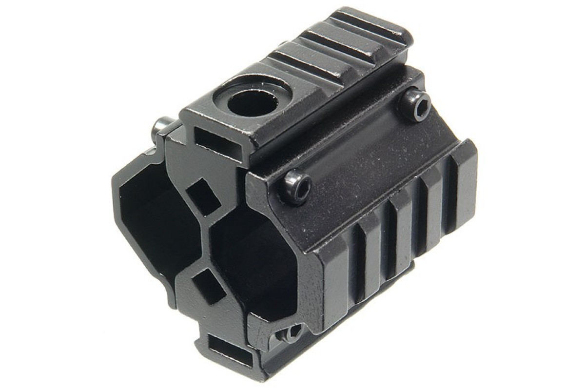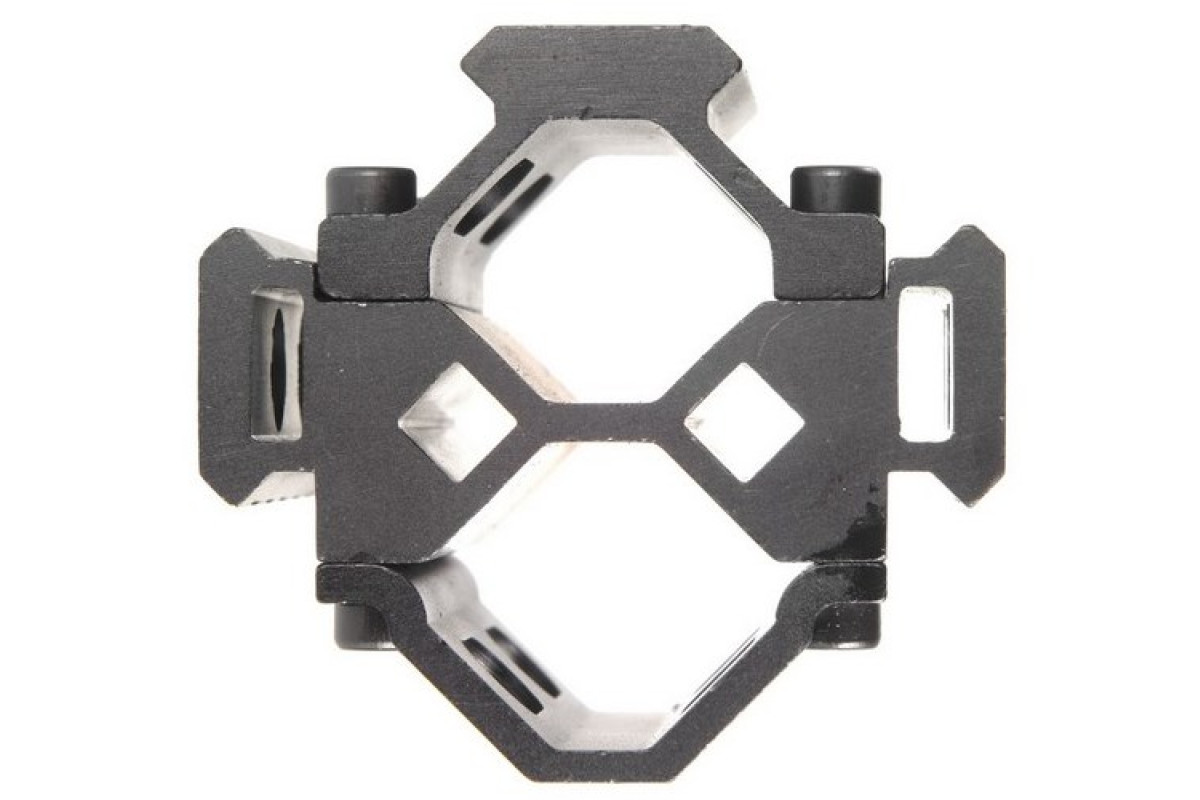 Универсальная трехсторонняя база Veber MNT-1513 для установки на ствол, позволяет устанавливать фонарь, лазерный целеуказатель и коллиматорный прицел одновременно, при этом сохраняется возможность использования механического прицела.