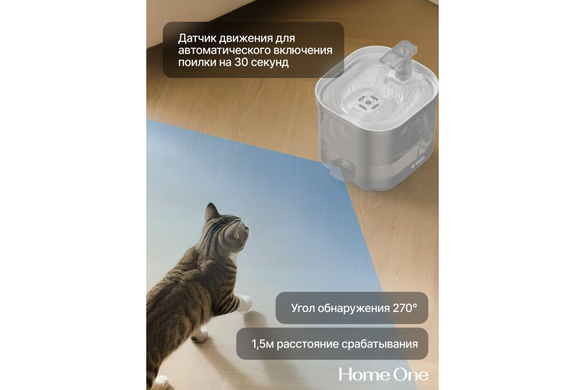 Автоматическая беспроводная поилка для животных с датчиком движения HOME ONE - важный компонент заботы о домашнем питомце. Теперь не нужно думать, где ближе розетка - у этой поилки нет проводов, а одного заряда хватает до 60 дней!