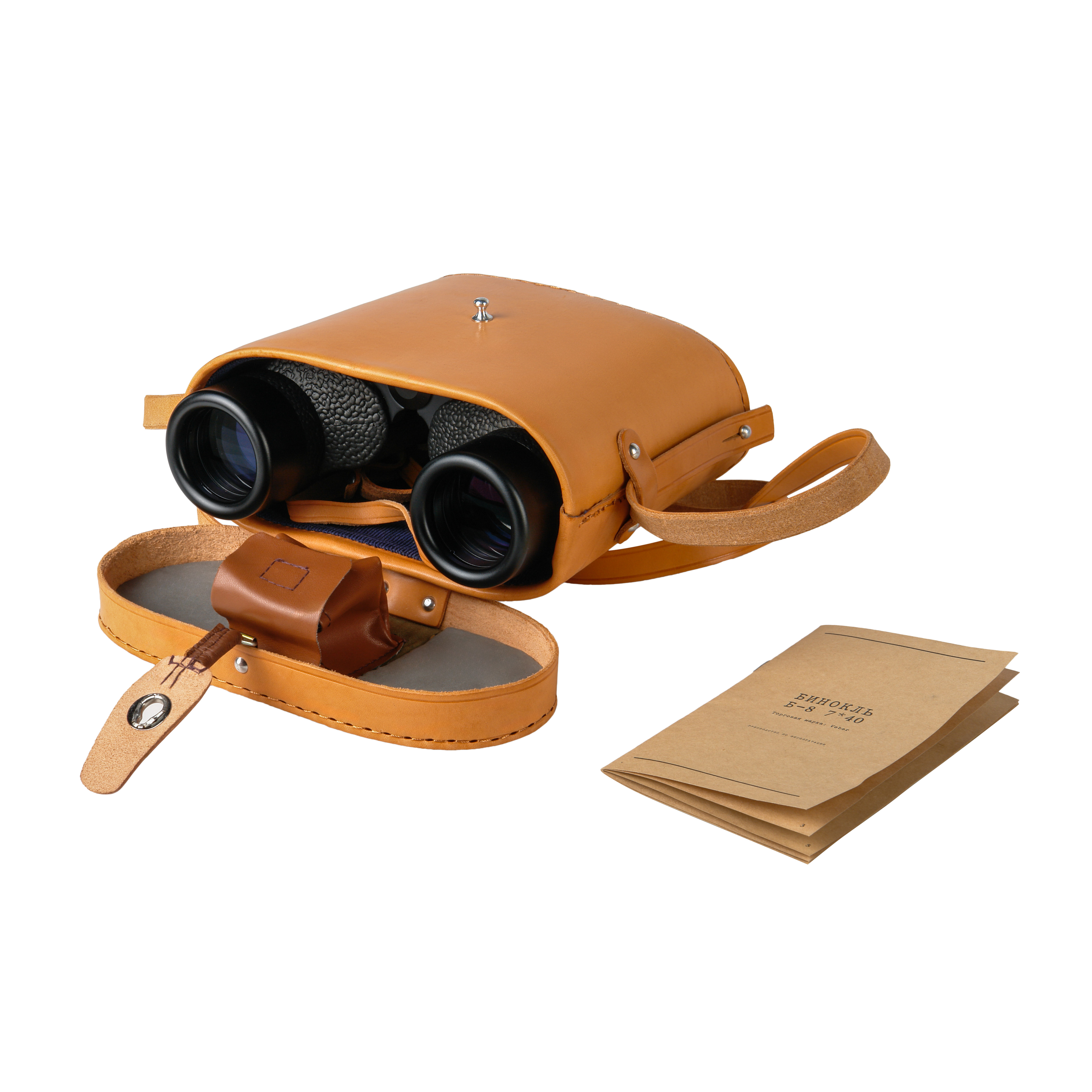 Бинокль Б-8 7*40 – классический полевой бинокль в современном исполнении с многослойным просветлением оптики и высокой светосилой. Прибор сочетает в себе ретро-стиль с кожаной отделкой корпуса и современные оптические технологии. Комплектуется надежным кожаным футляром для транспортировки.
