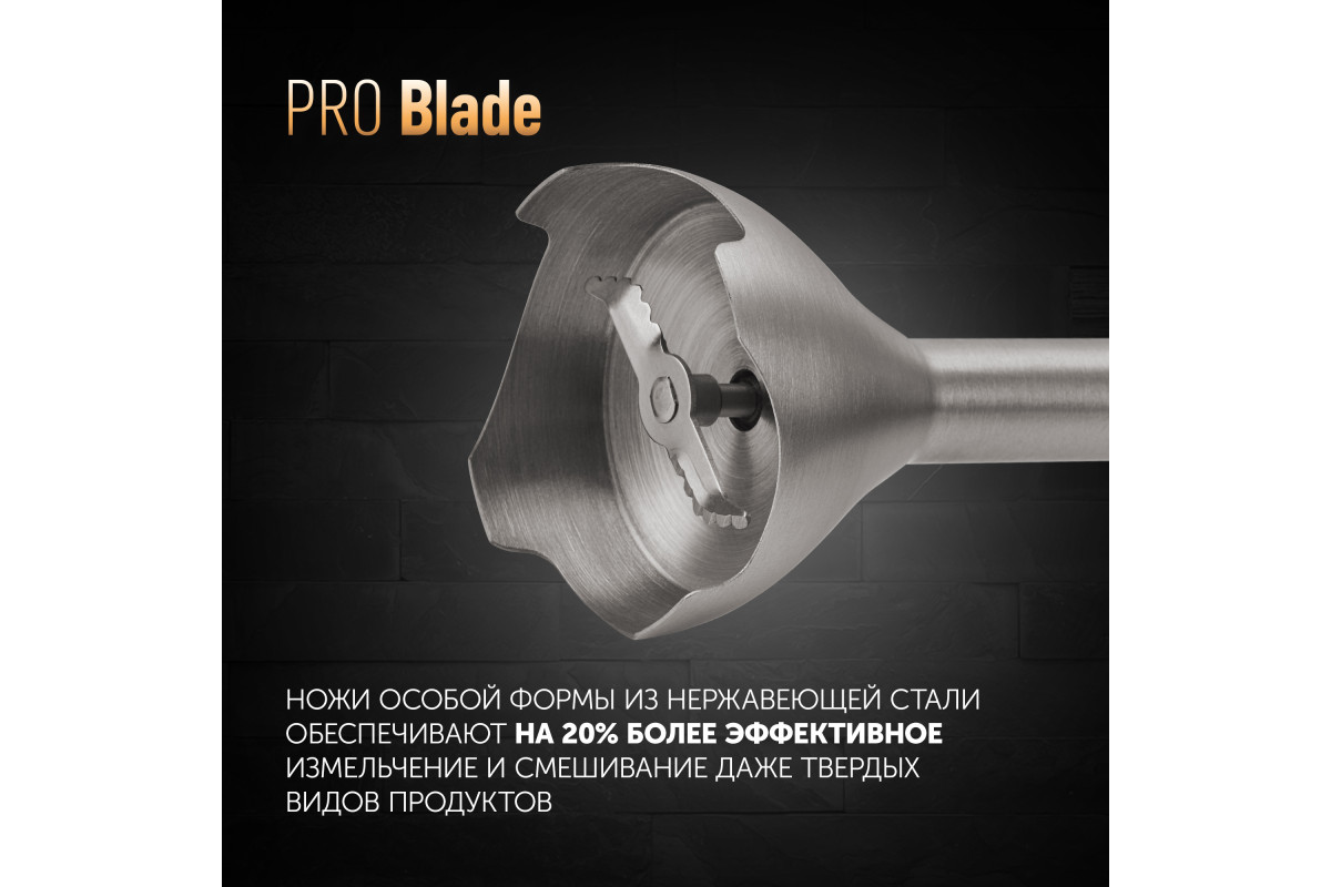 PRO Blade - ножи особой формы из нержавеющей стали обеспечивают на 20% более эффективное измельчение и смешивание даже твердых видов продуктов.