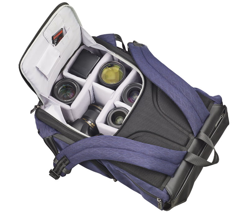 Сбоку система для прикрепления штатива, внешний эластичный карман.