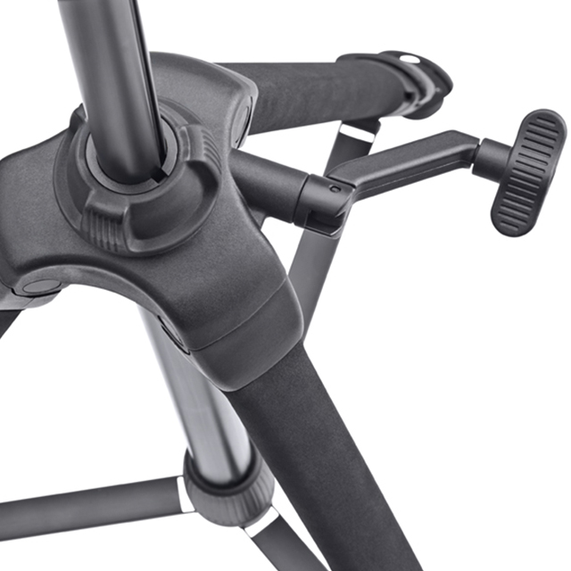 Прочное и фиксирующееся с помощью зажима центральное крепление вместе с поворачивающимися на 360 градусов резиновыми наконечниками для ножек гарантирует надёжность и устойчивость установки.