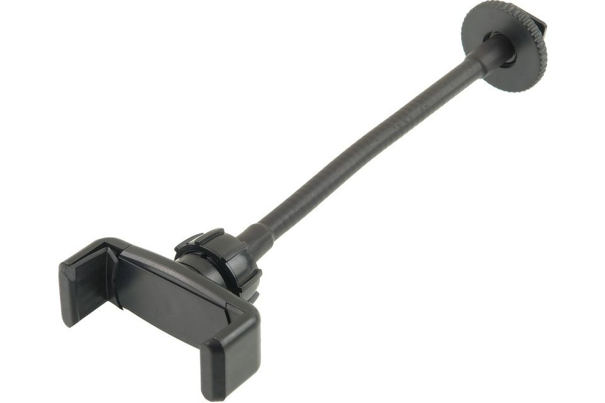 Металлическая штанга в полимерной оболочке изгибается с существенным усилием, позволяет точно расположить камеру смартфона относительно объекта съемки и стабильно сохраняет выбранное положение.