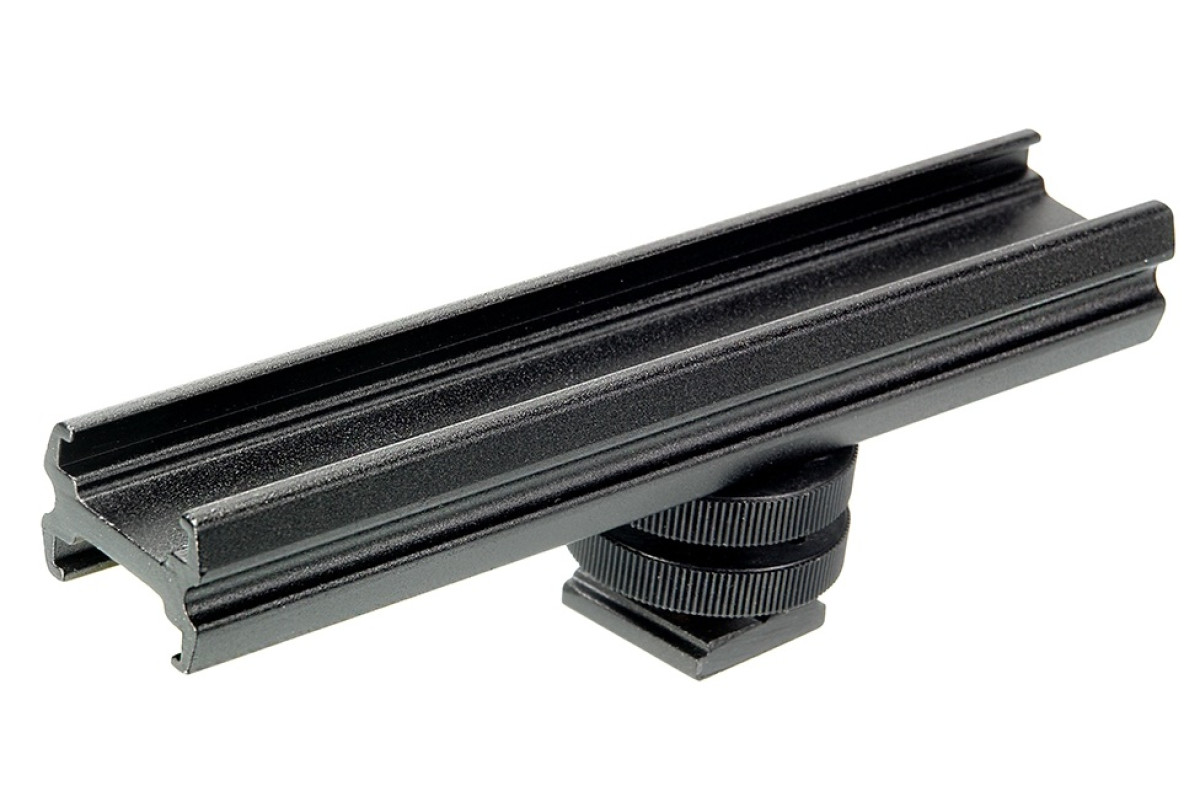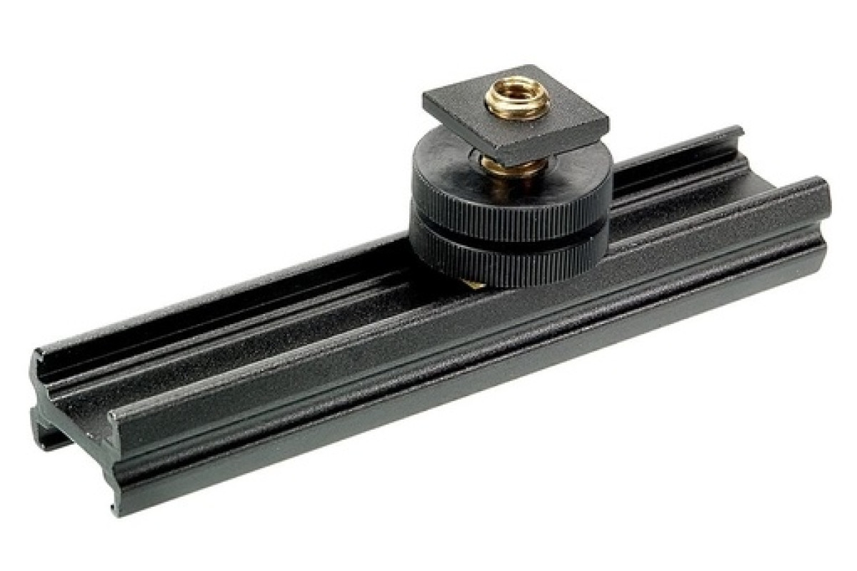 «Длинный» вариант основания «холодный башмак». Предназначен для установки дополнительных аксессуаров, типа микрофон, монитор, осветитель и т. д. Крепится на винт с резьбой 1/4" или на башмак камеры.