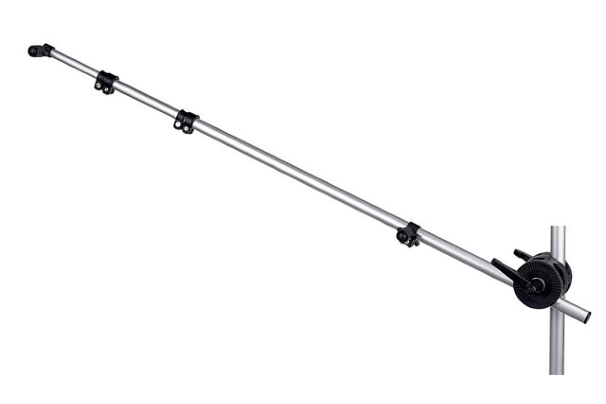 Длина телескопической штанги от 85 до 197 см, 3 секции, на штанге размещены два зажима для отражателя, максимальная длина между захватами 185 см. Держатель можно расположить под любым углом относительно стойки.
