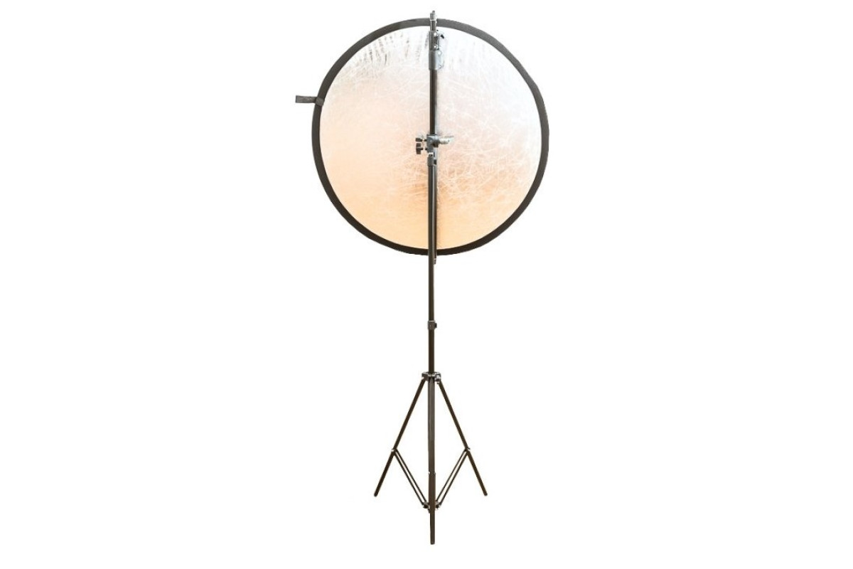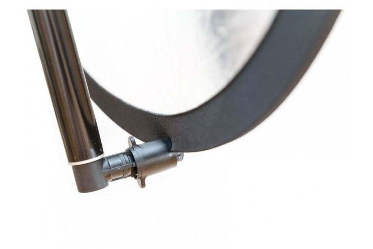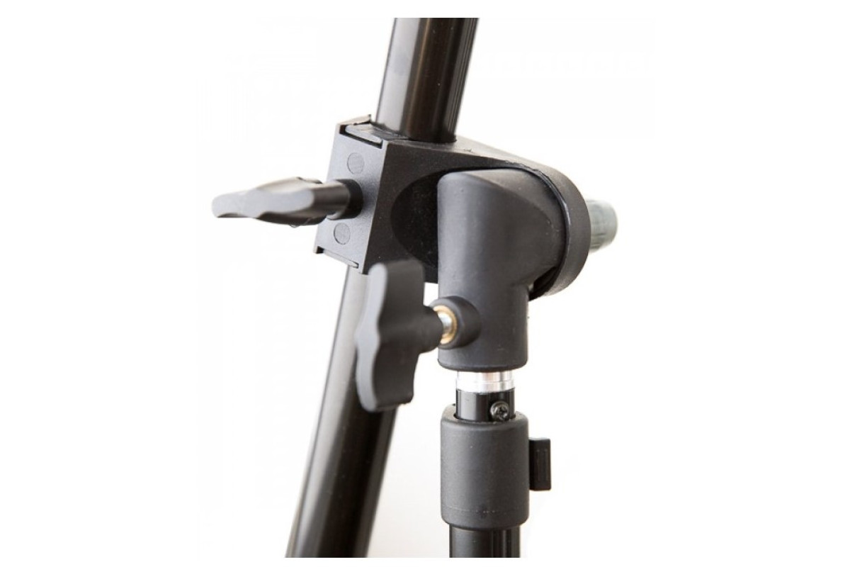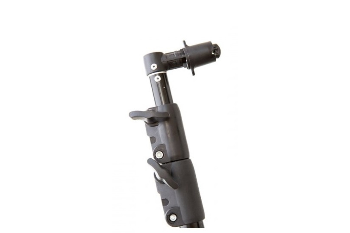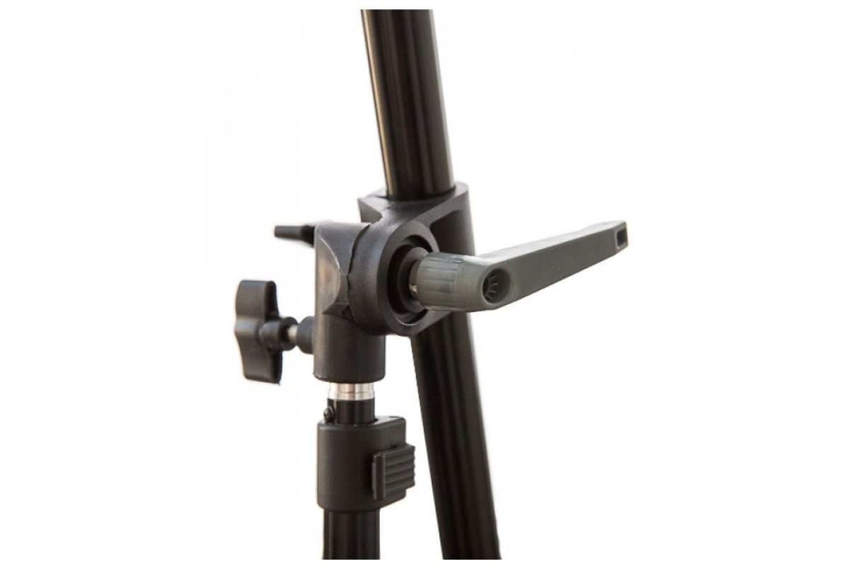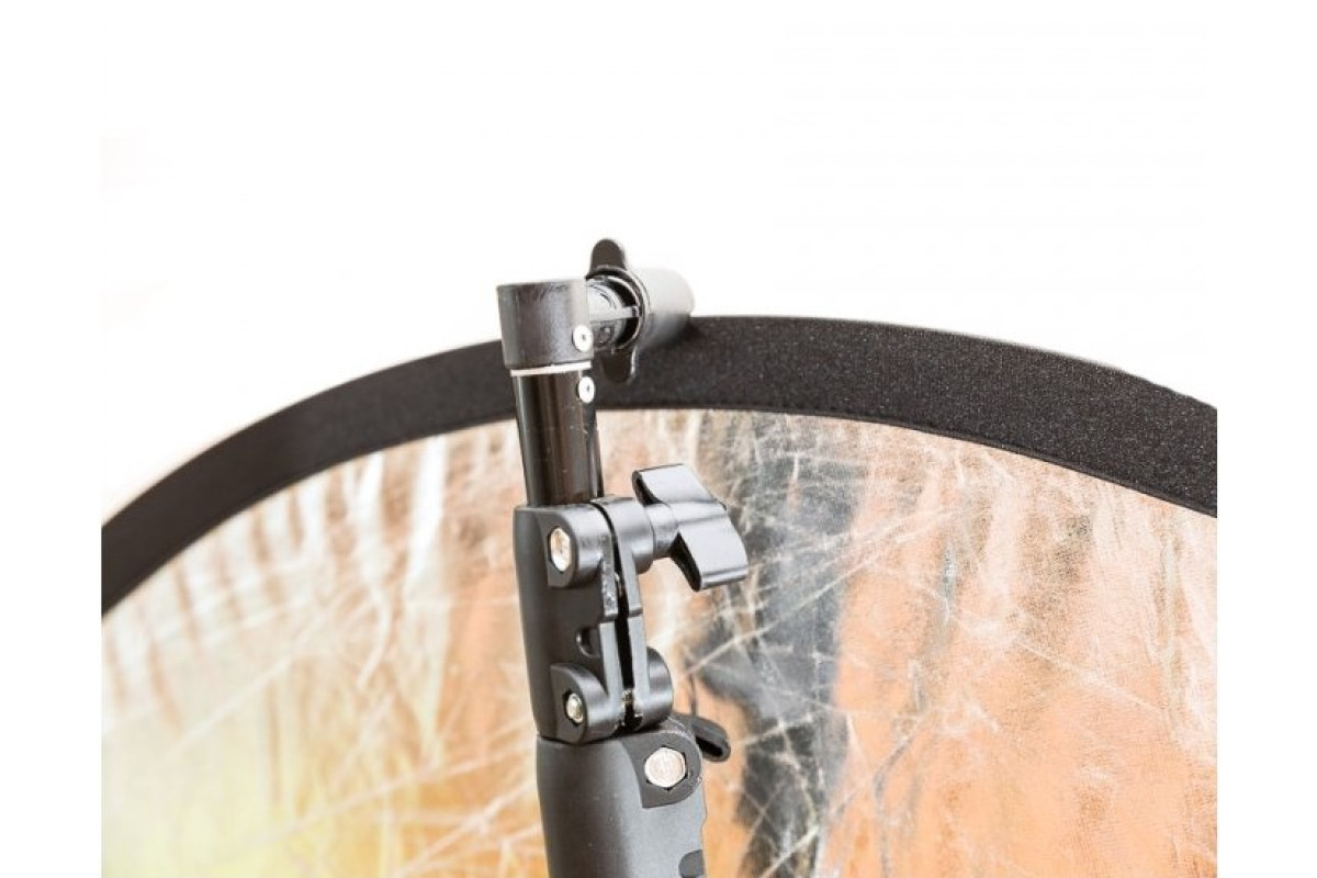 Держатель лайтдисков не имеет своих ног, а устанавливается на стандартную студийную стойку. Штанга с зажимами выдвигается и позволяет держать отражатели большого диаметра. В основной штанге есть две выдвижные секции, позволяющие крепить лайт-диски, длинной до 2м! Это обеспечивает комфортное использование отражателей при съемке ростовых портретов. Использован стандартный зажим с большим ходом. Зажимы для выдвижных штанг обычные - с хомутом и винтом. На адаптере стойки держатель отражателя фиксируется отдельным винтом.