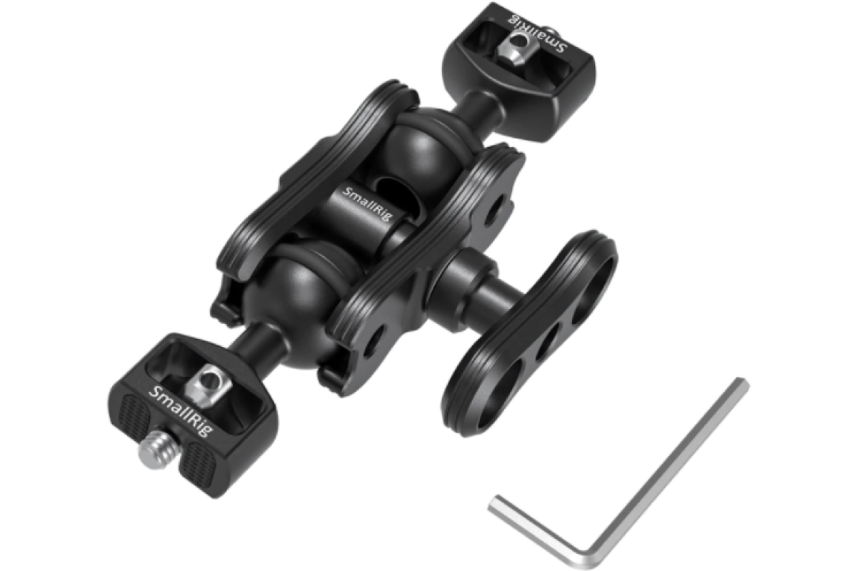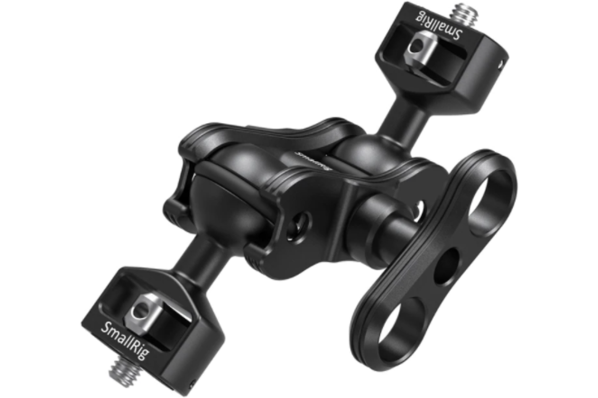Шарнирный держатель, позволяет устанавливать на камеру дополнительное оборудование с резьбовым соединением 1/4". Подойдет для крепления светодиодных осветителей, мониторов, микрофона и т.д. Изготовлен из алюминиевого сплава и стали. Фиксируется винтовым зажимом. Максимальная нагрузка - 5 кг. Размер - 137х28х57,5 мм. Вес - 152 г.