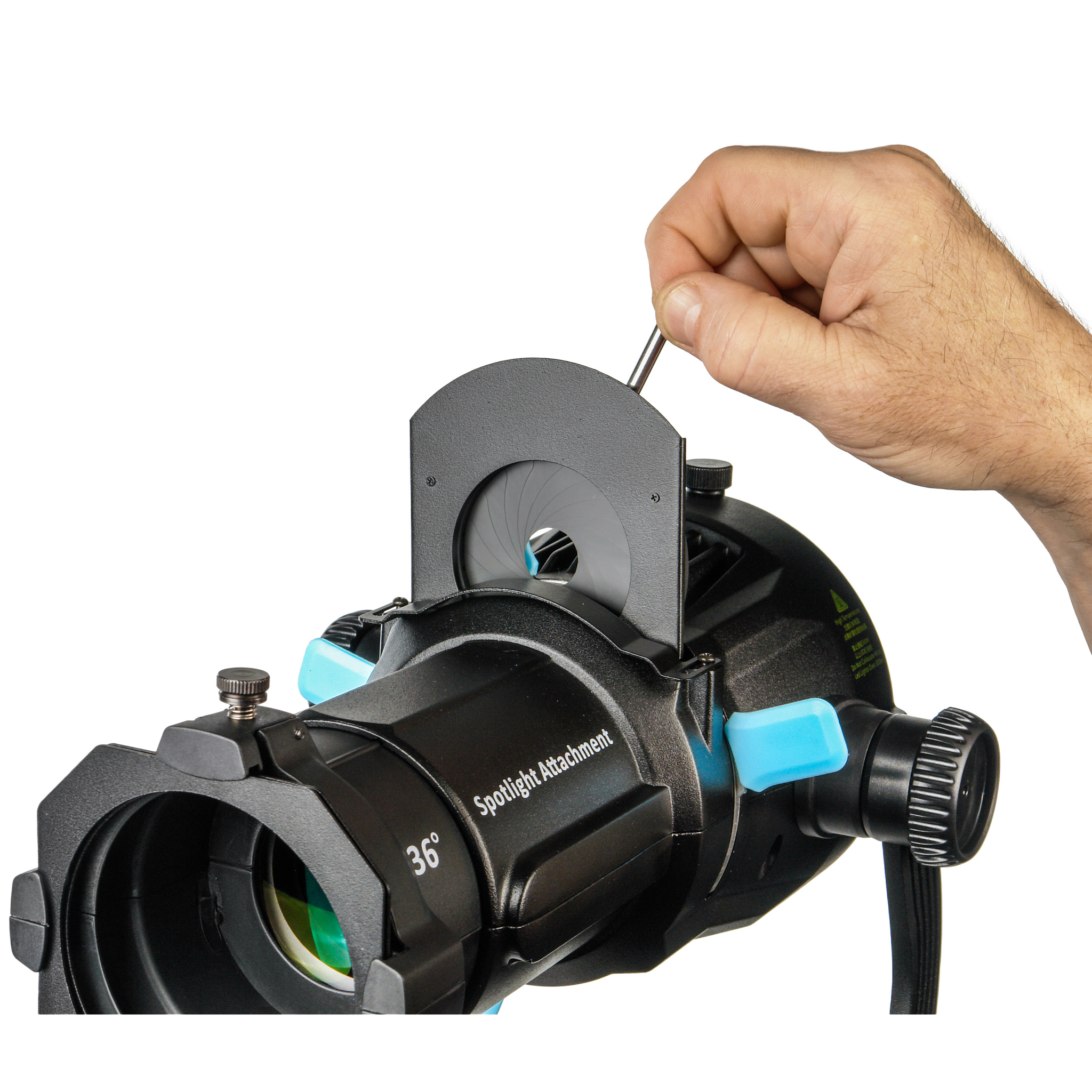 Изделие выполнено из прочного металла, что гарантирует надежность и длительный срок службы. Установка диафрагмы осуществляется простым размещением в специальный слот проекционной насадки.