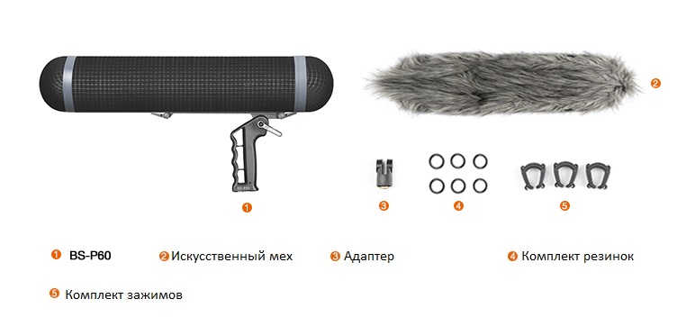 BS-P60 – аксессуар, предназначенный для защиты микрофона от ударов и вибраций и снижения шума ветра при минимальных потерях высоких частот.