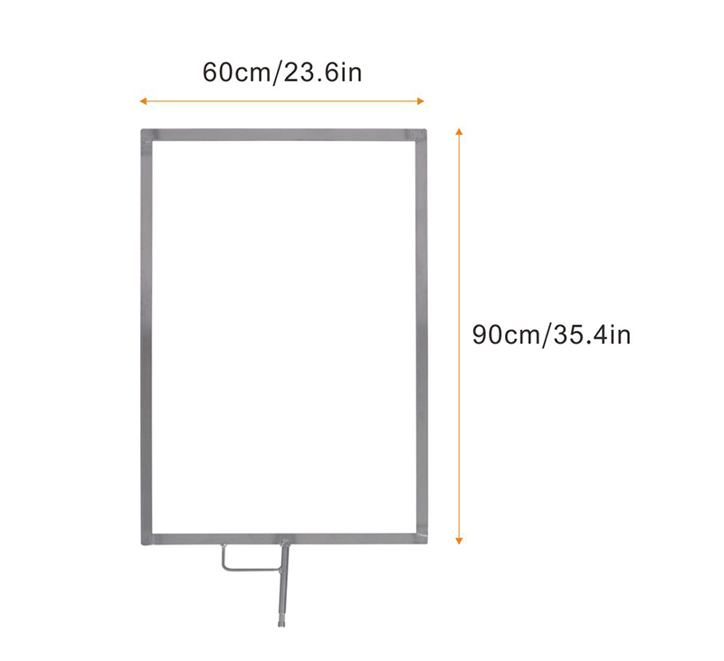 Белый просветный флаг с рамой из неразборного алюминиевого профиля с плоским сечением и опорой, которую можно использовать для подвешивания на стойку, когда флаг не используется.
