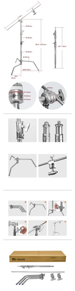 В комплект входит 1 кронштейн grip arm (117 см) с цапфами и внешней резьбой 3/8" и 1/4" на концах и 2 головки 2.5” grip head.