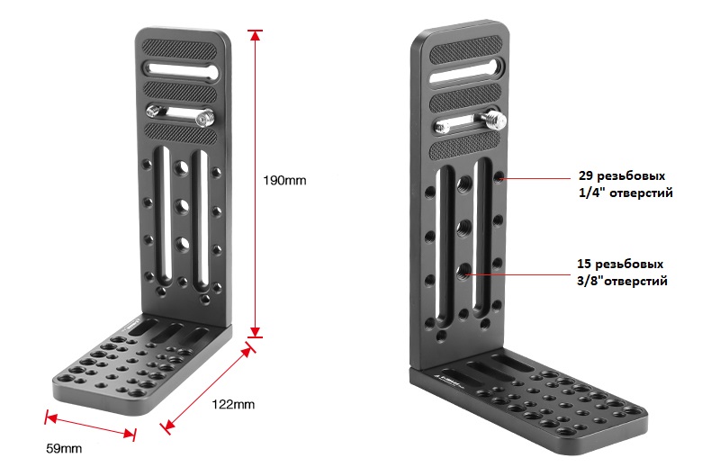 Оснащена крепежными отверстиями 3/8" (15 шт) & 1/4" (29 шт).