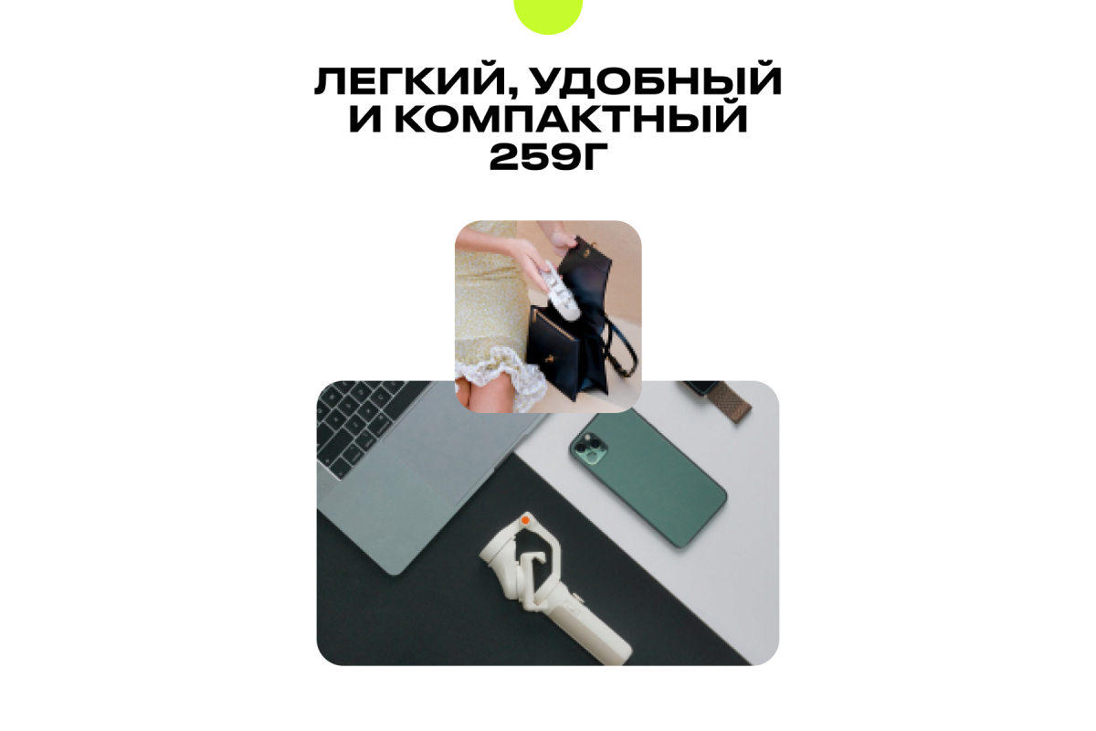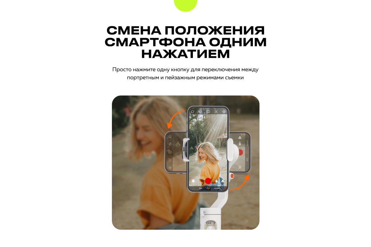 Помимо стабилизации смартфона, аксессуар значительно упрощает управление съемкой на синхронизированном устройстве. Для регулировки наклона и поворота в стедикаме предусмотрен эргономичный джойстик. Также на корпусе устройства есть кнопки для старта съемки видео или фото, быстрого перехода из альбомного в портретный режим, а также других популярных действий.
