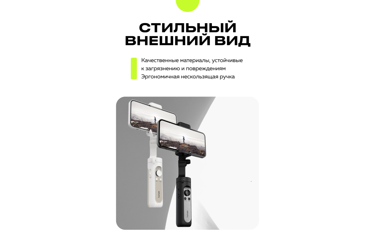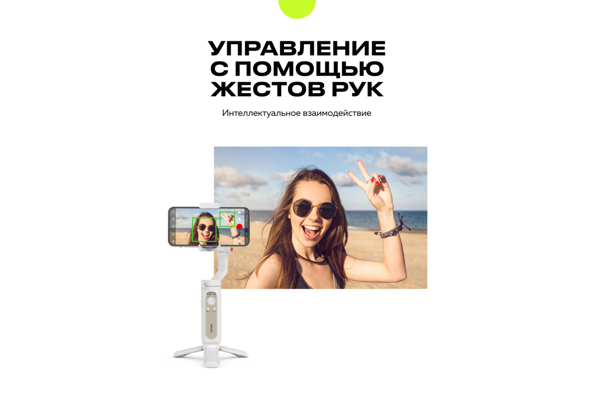 Установив на смартфон фирменное мобильное приложение Hohem Pro, доступное для iOS и Android, вы сможете использовать автоматическое отслеживание лиц и объектов. Чтобы включить эту функцию, достаточно показать соответствующий жест рукой, и Hohem iSteady X2 будет следить за вами. Или выберите нужный объект на экране мобильного устройства, чтобы камера следовала за ним.