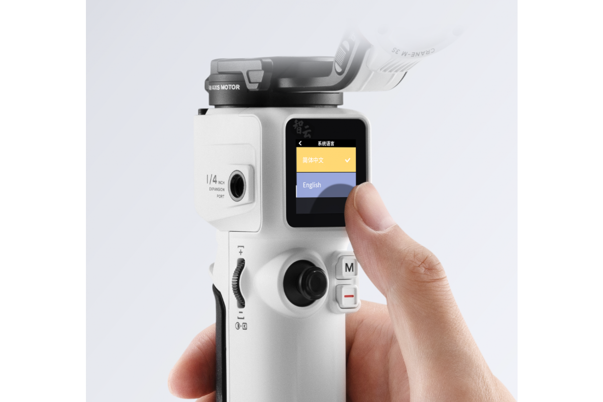 Встроенный сенсорный экран с диагональю 1,22 дюйма позволяет настраивать параметры съемки (режим работы стабилизатора, скорость реакции на движение и другие параметры). Благодаря удобному расположению экрана стабилизатором можно управлять одной рукой.