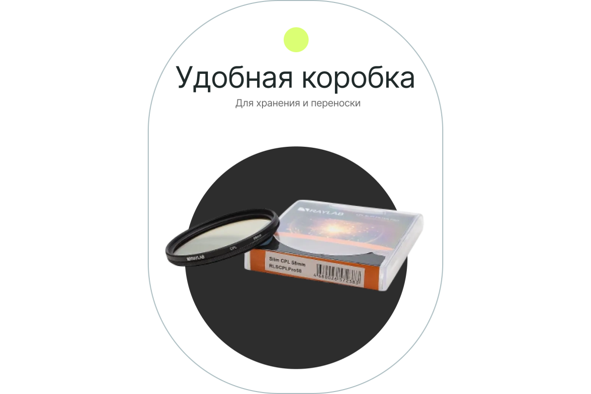 Циркулярный поляризационный светофильтр позволяет удалять при съемке нежелательные отражения и блики от неметаллических поверхностей, таких как вода, стекло и др.