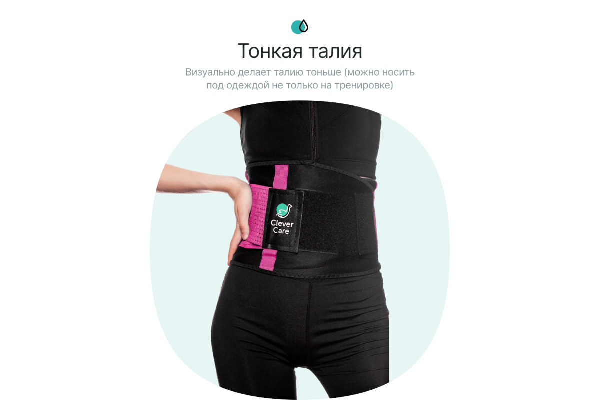 Фитнес пояс для похудения CleverCare создан из эластичного материала, что делает его универсальным по размеру (от S до XL). Позволяет коже дышать, одновременно увеличивая и сохраняя тепло тела, способствует выведению большого количества жидкости из организма, что приводит к постепенной потере веса при регулярном использовании на тренировках.