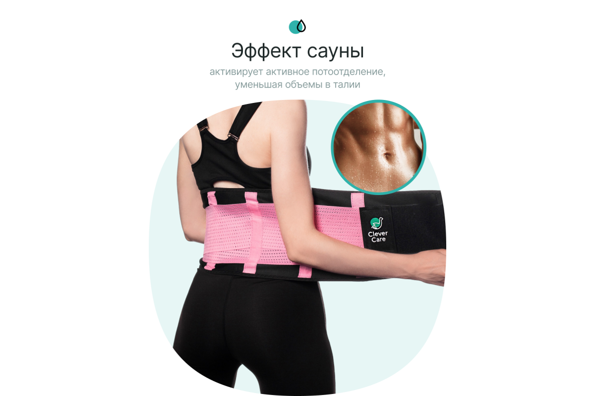 Фитнес пояс для похудения CleverCare создан из эластичного материала, что делает его универсальным по размеру (от S до XL). Позволяет коже дышать, одновременно увеличивая и сохраняя тепло тела, способствует выведению большого количества жидкости из организма, что приводит к постепенной потере веса при регулярном использовании на тренировках.
