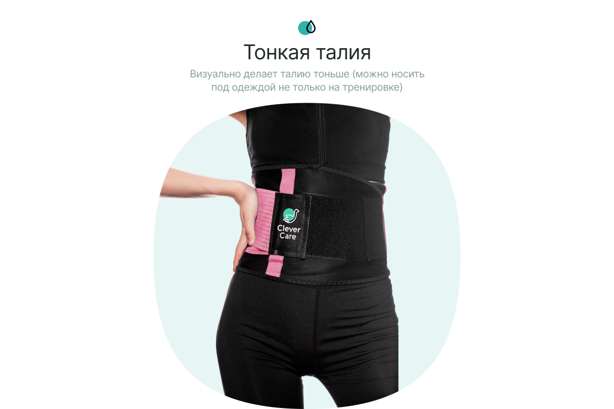 Фитнес пояс для похудения CleverCare создан из эластичного материала, что делает его универсальным по размеру (от S до XL). Позволяет коже дышать, одновременно увеличивая и сохраняя тепло тела, способствует выведению большого количества жидкости из организма, что приводит к постепенной потере веса при регулярном использовании на тренировках.