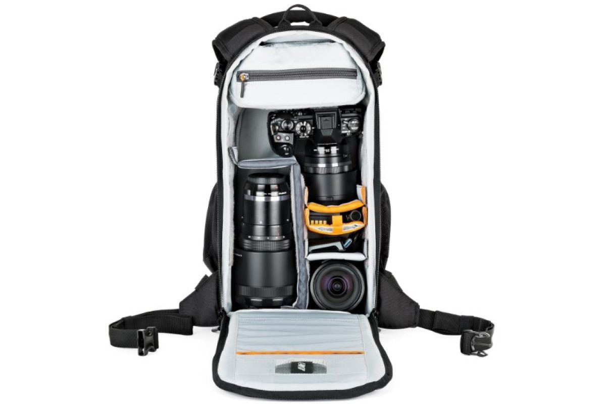 Узкий длинный рюкзак для зеркальной фотокамеры с двумя объективами Размещается на спине так, чтобы не мешать движениям. Молния застегивается не по периметру, а на внутренней стороне рюкзака, которая прилегает к спине — чтобы обеспечить полную сохранность аппаратуры.