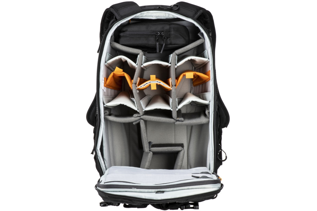 ProTactic BP 350 AW II вмещает 1-2 камеры и несколько объективов. В зависимости от ваших потребностей, вы можете отгородить часть пространства под личные вещи. Рюкзак предоставляет доступ с 4 сторон: справа, слева, сверху и через спинку. Боковые доступы для безопасности можно закрыть на небольшие навесные замки (универсальные, приобретаются отдельно). Помимо внутренних отсеков в комплекте идут 2 навесных кармана для аксессуаров, два ремня и тканевая чашка для ног штатива. Серия рюкзаков ProTactic интересна тем, что вы можете использовать их в максимально обтекаемом виде (удобно, если вам предстоит перемещаться в тесных, многолюдных пространствах), либо, наоборот, обвесить их по максимуму различными чехлами и подсумками (если вы собрались на пару дней на природу). Как уже говорилось, это очень крепкие рюкзаки, которые способны вынести серьезные испытания. При этом они комфортны и удобны для использования в мирной жизни.