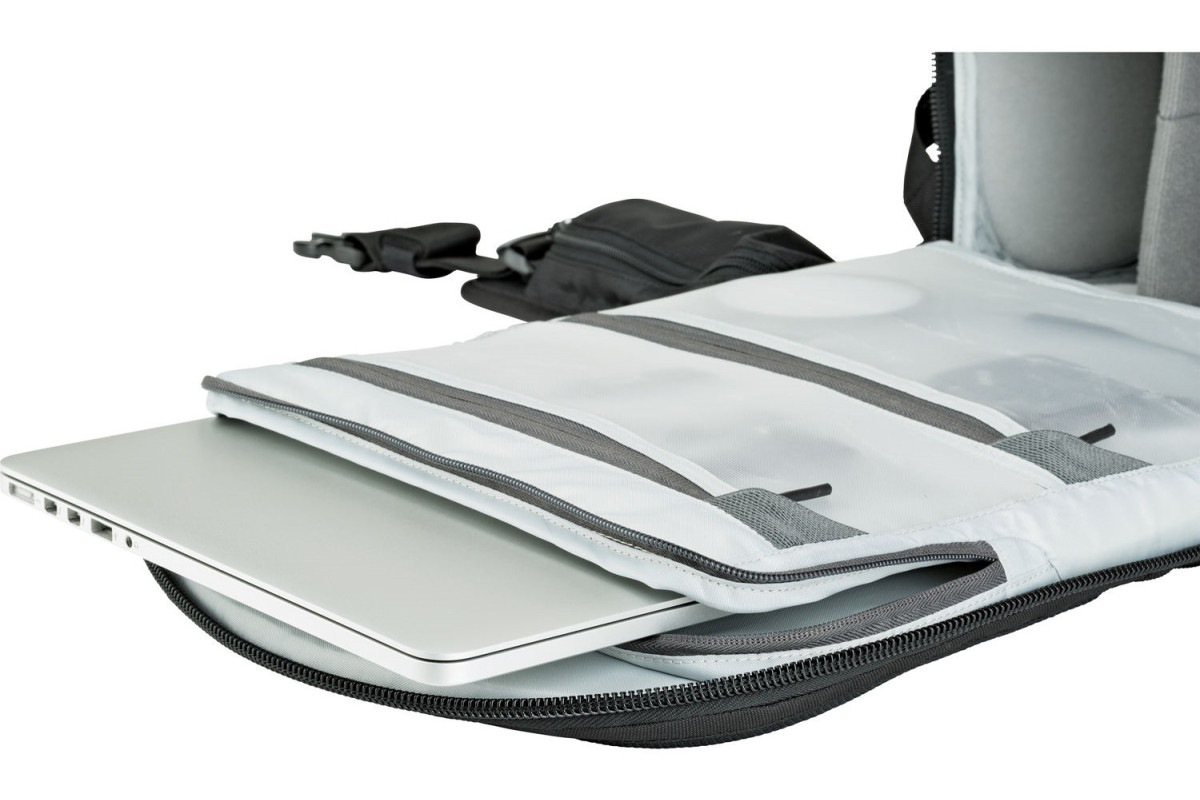 Чуть больше стали боковые люки, теперь в них легче проходят крупные камеры с батарейными ручками. По бокам добавлена полоса с вертикальной ленточной прошивкой. Увеличена пряжка поясного ремня: теперь используется 38-миллиметровая. Внутренние карманы теперь выполнены из полупрозрачной ткани, чтобы вам проще было понять, что где находится. Добавлена широкая петля на спинке, чтобы рюкзак можно было зафиксировать на ручке дорожного чемодана.