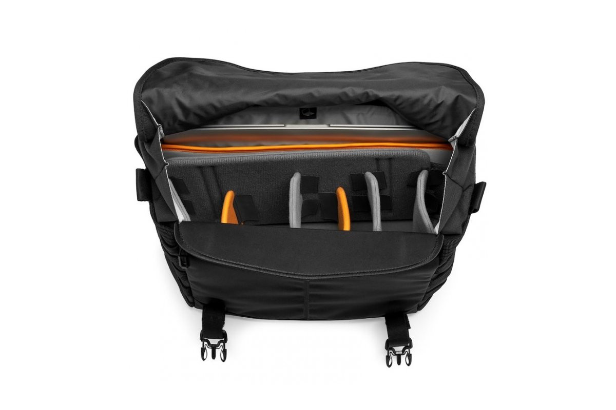 Сумка имеет основную особенность, отличающую всю серию ProTactic, - это модульный дизайн. Благодаря системе петлей SlipLock™ на внешней стороне сумки, фотограф может адаптировать ее под индивидуальные условия работы. Петли позволяют закрепить кейсы для объективов, аксессуаров, чтобы разместить оборудование в удобном доступе. В дизайне сумки используется модульная система QuickShelf™, которая представляет собой съемные модульные перегородки для моделирования внутреннего пространства по своему усмотрению. Система QuickShelf™ позволяет максимально удобно использовать чехлы Lowepro Gear Up для устройств и мелких аксессуаров. При желании фотограф может извлечь перегородки, преобразовав фотосумку в обычный мессенджер с большой вместимостью.