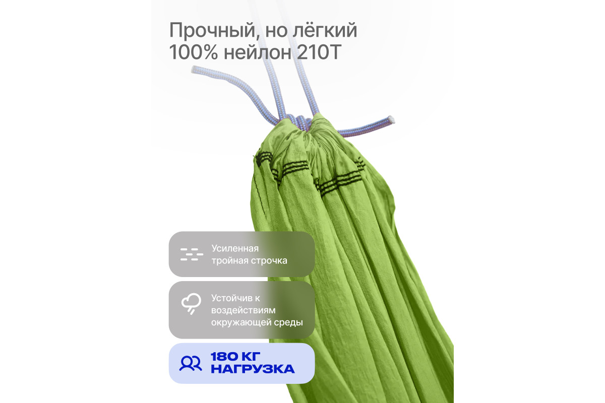 Компактный гамак RoadLike - всё что необходимо для идеального отдыха на даче, пикнике или в туристическом походе. Благодаря дышащей и высокопрочной ткани, он выдерживает нагрузку до 180 кг и позволяет полностью расслабиться. Благодаря более широкому размеру 140см, гамак обеспечивает достаточно большое пространство для игры и предотвращает боковое переворачивание, вы можете оставаться на нем безопасно и комфортно. Собирается и складывается в удобный чехол за несколько минут, легко крепится. Продуманный до мелочей - он станет идеальным подарком для любителей комфорта. В сложенном виде размер 25*12*12 см.