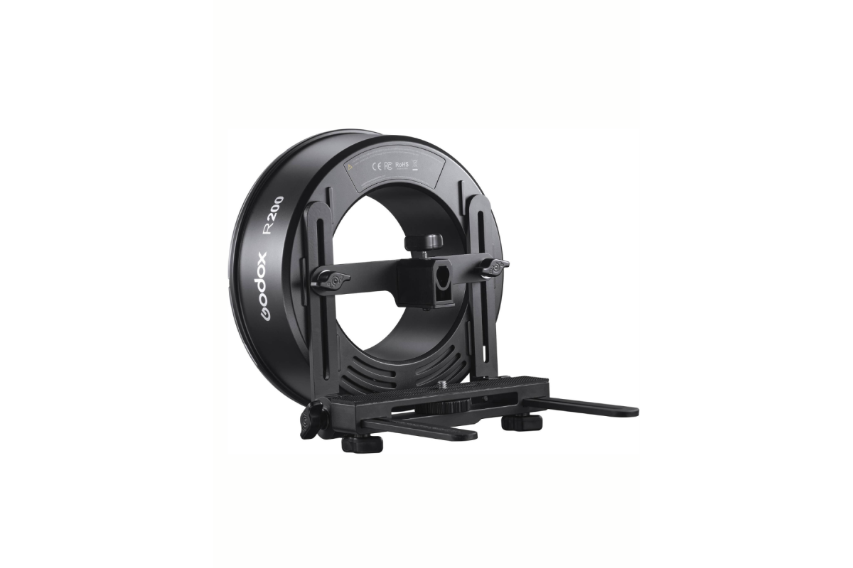 Кольцевая голова Godox Witstro R200 устанавливается и используется в нескольких вариантах. Легкий импульсный источник весом всего 0.64 кг, можно установить на фотокамеру с помощью комплектного кронштейна, что даст фотографу полную свободу в выборе ракурса при съемке.