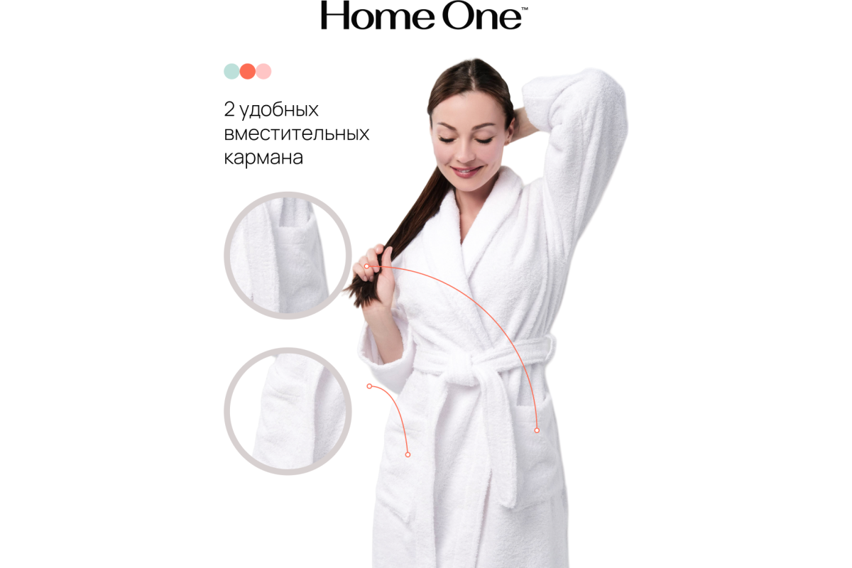 Халат махровый Home One выполнен из 100% хлопка. Мягкий, легкий и нежный на ощупь домашний халат, он подарит ощущение комфорта и уюта. Махровый халат Home One прекрасно впитывает влагу, при этом не препятствует свободной циркуляции воздуха, изделие не тяжелое. Обладаете отличными теплосохраняющими качествами и не нарушает естественную терморегуляцию. Махровый халат прекрасно подходит для повседневного использования дома, в бане и бассейне. Не прихотлив в уходе, не садится при стирке, не линяет, выдерживает большое количество стирок без изменения качеств. Home One предлагает широкий размерный ряд от 44 до 54 размеров, стильные и благородные цвета.