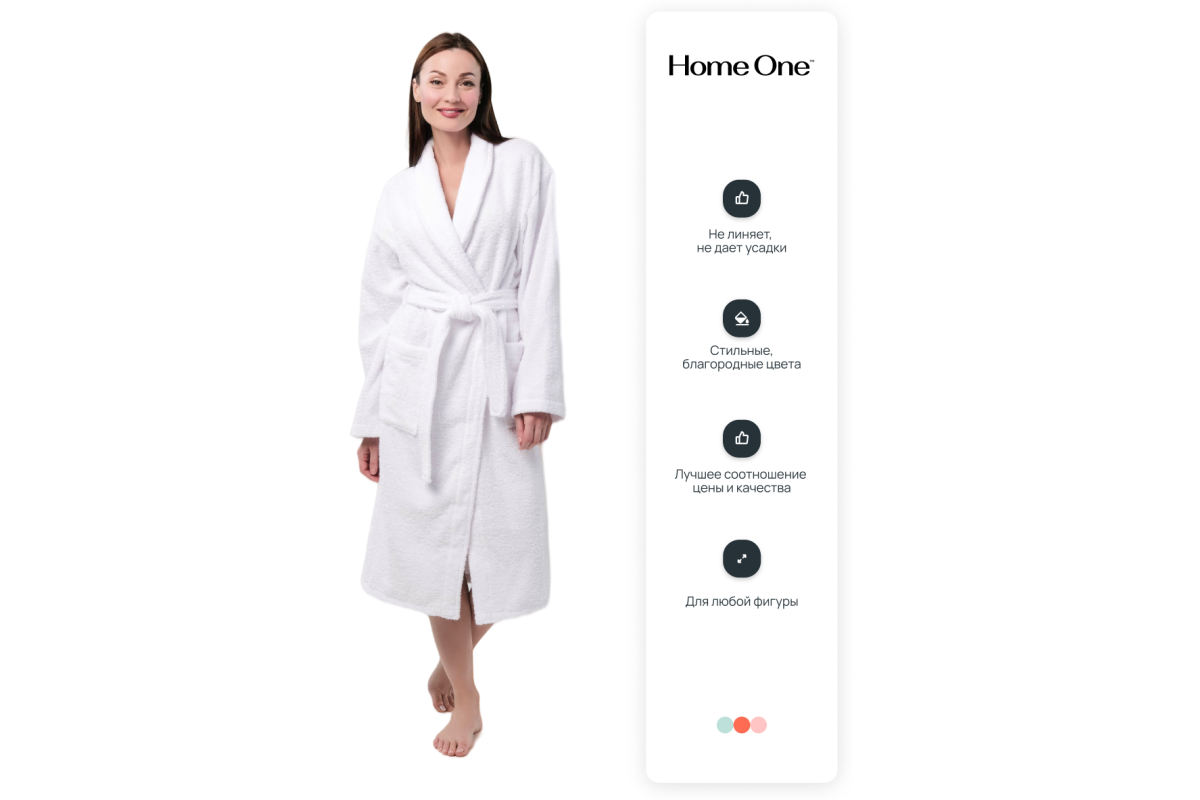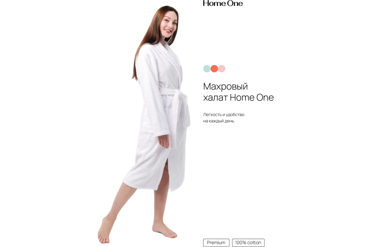 Халат махровый Home One выполнен из 100% хлопка. Мягкий, легкий и нежный на ощупь домашний халат, он подарит ощущение комфорта и уюта. Махровый халат Home One прекрасно впитывает влагу, при этом не препятствует свободной циркуляции воздуха, изделие не тяжелое. Обладаете отличными теплосохраняющими качествами и не нарушает естественную терморегуляцию. Махровый халат прекрасно подходит для повседневного использования дома, в бане и бассейне. Не прихотлив в уходе, не садится при стирке, не линяет, выдерживает большое количество стирок без изменения качеств. Home One предлагает широкий размерный ряд от 44 до 54 размеров, стильные и благородные цвета.