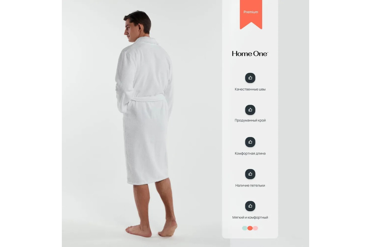 Халат мужской махровый изготовлен из высококачественного натурального, дышащего материала турецкого производства, 100% натуральный хлопок. Плотность ткани 360 гр/м2. Легкий махровый халат Home One прекрасно впитывает влагу, при этом не препятствует свободной циркуляции воздуха. Обладаете отличными теплосохраняющими качествами и не нарушает естественную терморегуляцию. Модель выполнена в классическом стиле имеет длинный широкий рукав, два глубоких накладных кармана, пояс. Длина халата обеспечивает максимальное удобство и легкость при движении. Халат идеально подходит для домашнего использования, на даче, в бане и сауне. Махровый мужской халат Home One подходит для мужчин с любым типом фигуры Изделие может стать отличным и полезным подарком для родных и близких. В целях идеальной посадки при повседневной эксплуатации изделия, халат отшивается с учетом усадки ткани после предварительной стирки. Изделие не теряет цвет.