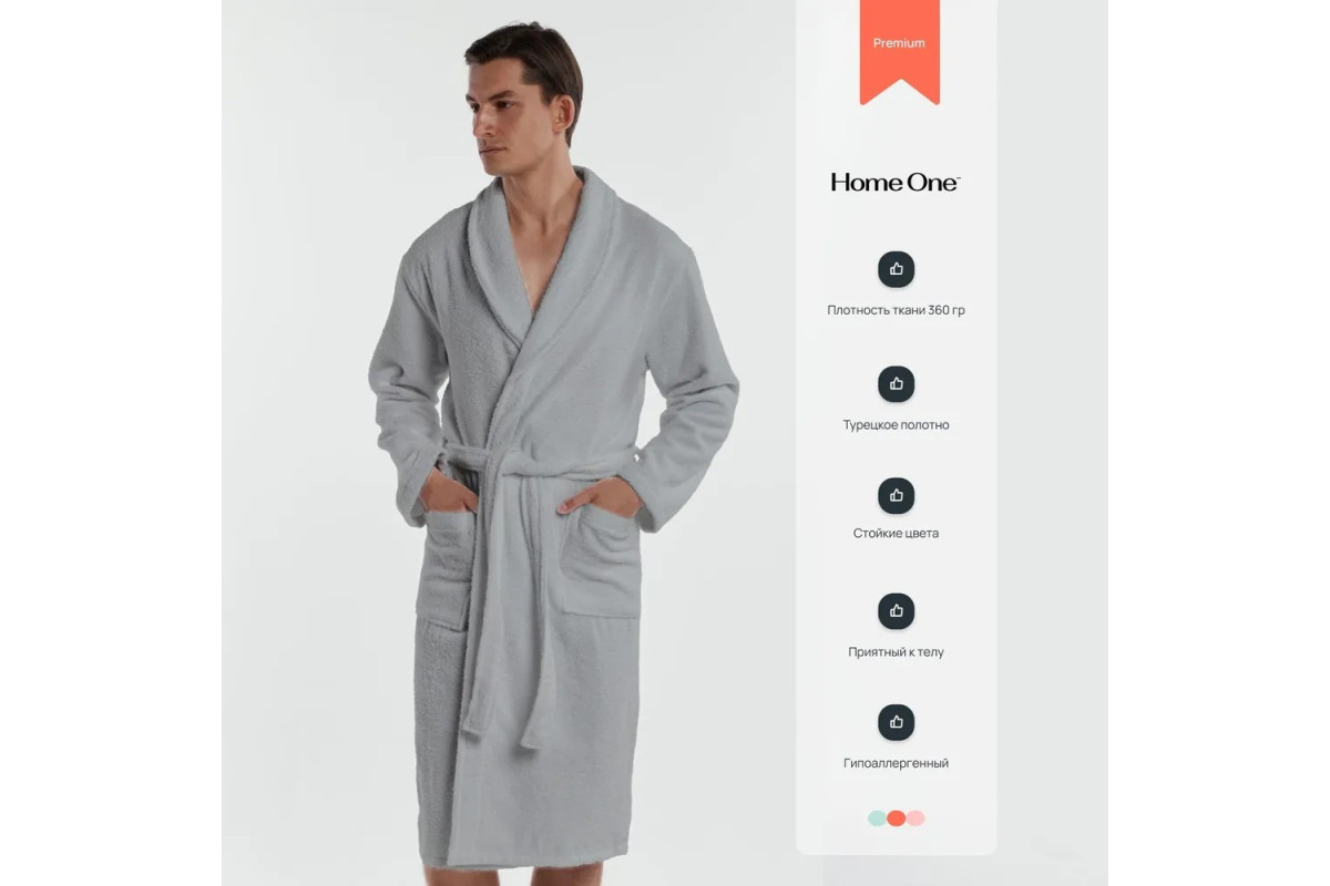 Халат мужской махровый изготовлен из высококачественного натурального, дышащего материала турецкого производства, 100% натуральный хлопок. Плотность ткани 360 гр/м2. Легкий махровый халат Home One прекрасно впитывает влагу, при этом не препятствует свободной циркуляции воздуха. Обладаете отличными теплосохраняющими качествами и не нарушает естественную терморегуляцию. Модель выполнена в классическом стиле имеет длинный широкий рукав, два глубоких накладных кармана, пояс. Длина халата обеспечивает максимальное удобство и легкость при движении. Халат идеально подходит для домашнего использования, на даче, в бане и сауне. Махровый мужской халат Home One подходит для мужчин с любым типом фигуры Изделие может стать отличным и полезным подарком для родных и близких. В целях идеальной посадки при повседневной эксплуатации изделия, халат отшивается с учетом усадки ткани после предварительной стирки. Изделие не теряет цвет.