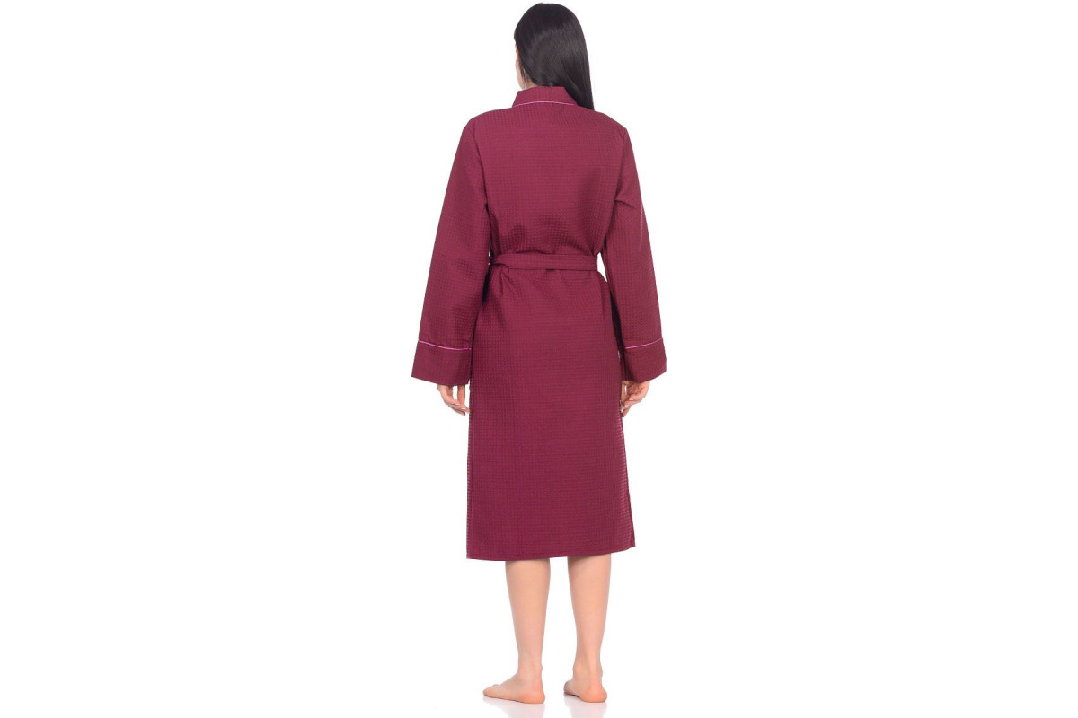 Легкий и стильный халат Home One выполнен из вафельного полотна, плотностью 250гр/м2. Это материал, состоящий из хлопчатобумажных нитей, без добавления синтетики. Халат гарантирует полную свободу, не сковывает движения, и, благодаря плотной ткани, порадует вас длительной ноской. Изделие отделано оригинальным контрастным кантом по воротниковой зоне, на рукавах и карманах. Халат отлично подходит для домашнего использования, обеспечивает комфорт, а ткань обладает тактильно приятной текстурой.