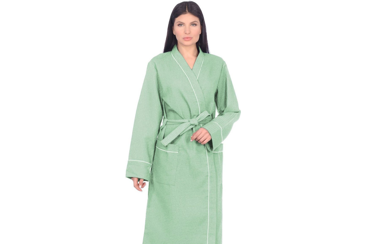 Халат вафельный Home One с кантом фисташка 42