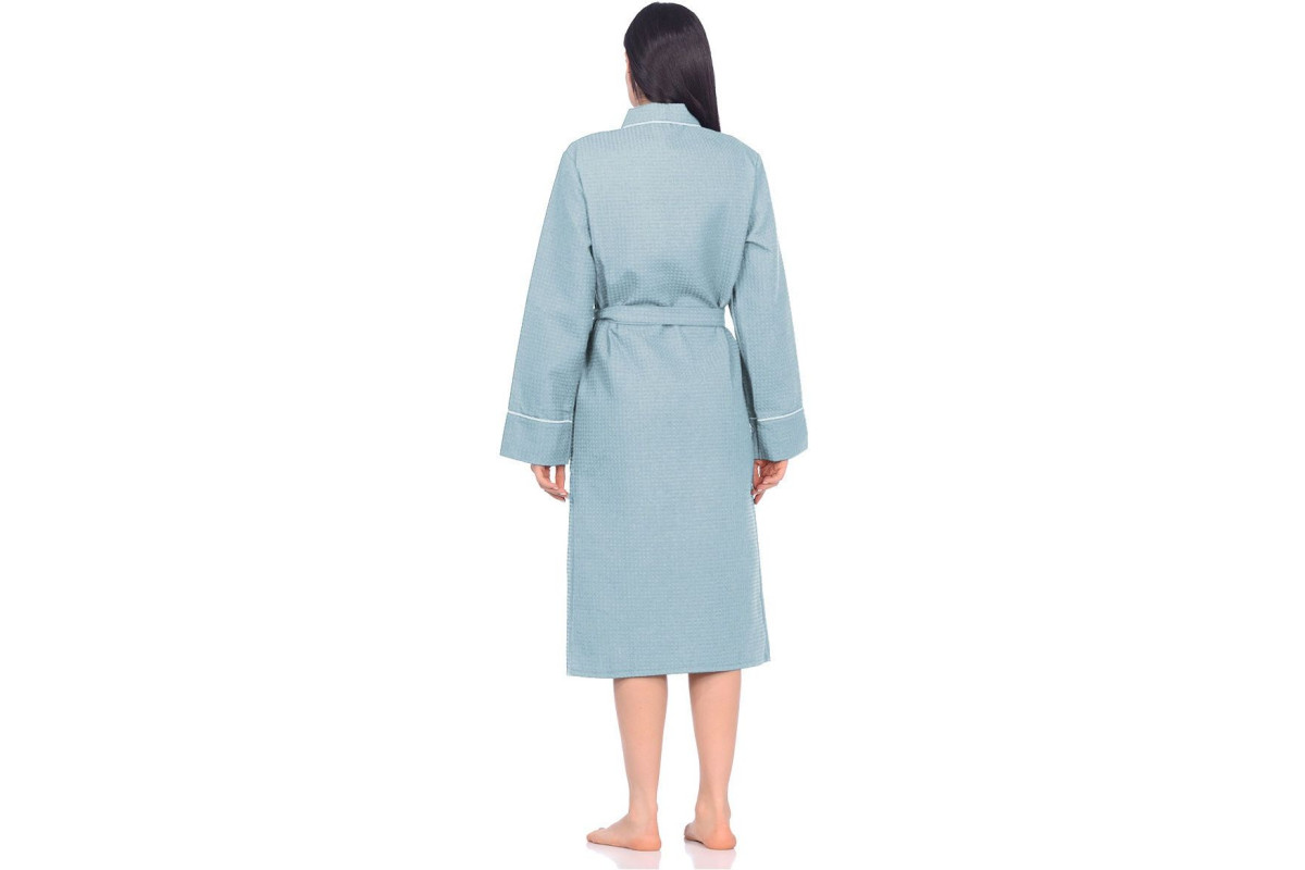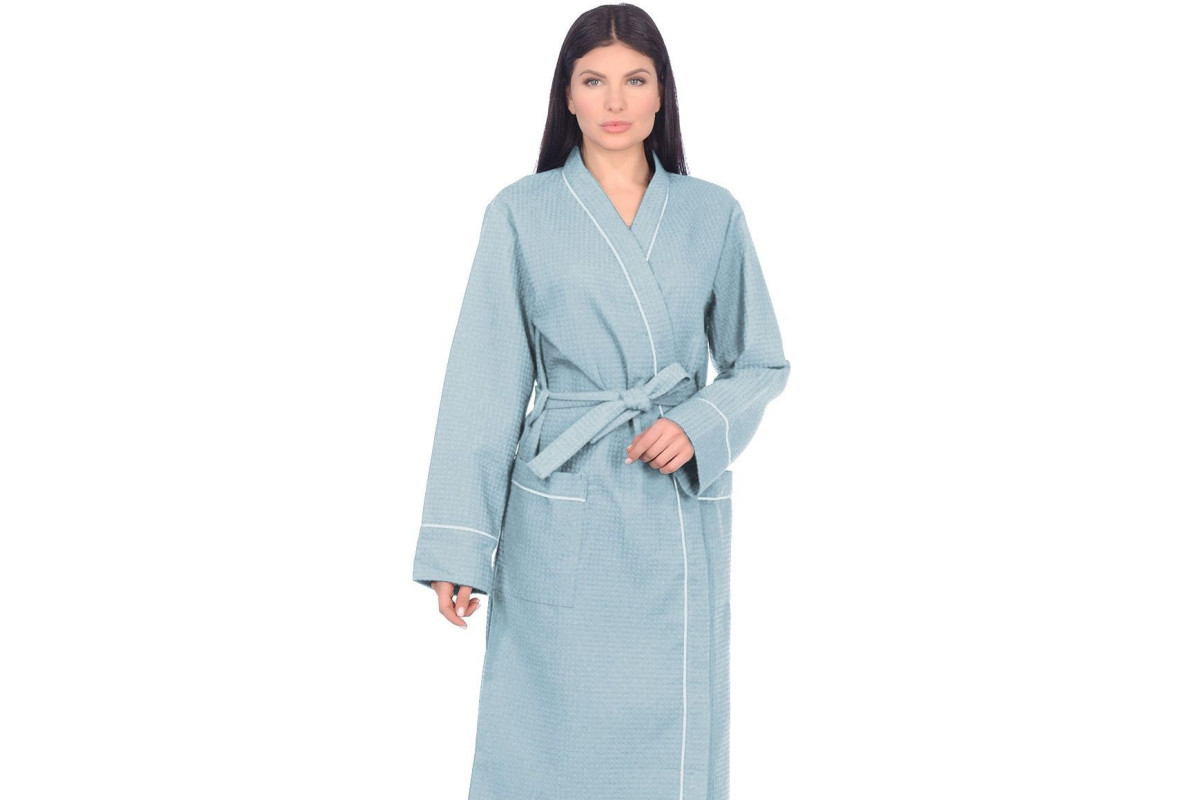 Легкий и стильный халат Home One выполнен из вафельного полотна, плотностью 250гр/м2. Это материал, состоящий из хлопчатобумажных нитей, без добавления синтетики. Халат гарантирует полную свободу, не сковывает движения, и, благодаря плотной ткани, порадует вас длительной ноской. Изделие отделано оригинальным контрастным кантом по воротниковой зоне, на рукавах и карманах. Халат отлично подходит для домашнего использования, обеспечивает комфорт, а ткань обладает тактильно приятной текстурой.