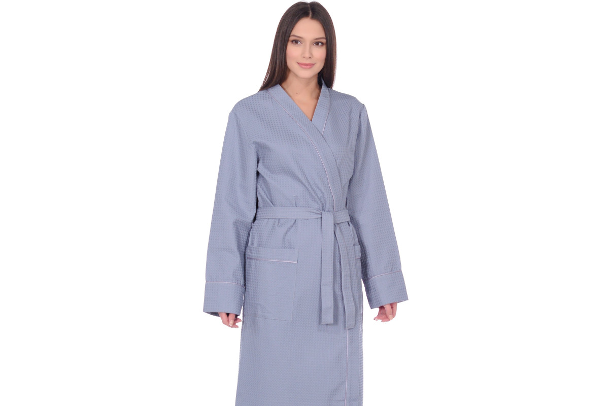 Легкий и стильный халат Home One выполнен из вафельного полотна, плотностью 250гр/м2. Это материал, состоящий из хлопчатобумажных нитей, без добавления синтетики. Халат гарантирует полную свободу, не сковывает движения, и, благодаря плотной ткани, порадует вас длительной ноской. Изделие отделано оригинальным контрастным кантом по воротниковой зоне, на рукавах и карманах. Халат отлично подходит для домашнего использования, обеспечивает комфорт, а ткань обладает тактильно приятной текстурой.