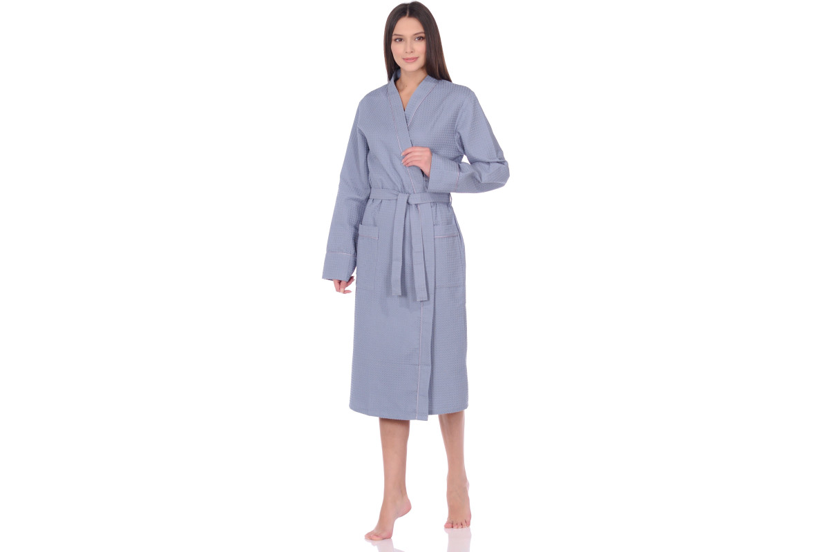 Легкий и стильный халат Home One выполнен из вафельного полотна, плотностью 250гр/м2. Это материал, состоящий из хлопчатобумажных нитей, без добавления синтетики. Халат гарантирует полную свободу, не сковывает движения, и, благодаря плотной ткани, порадует вас длительной ноской. Изделие отделано оригинальным контрастным кантом по воротниковой зоне, на рукавах и карманах. Халат отлично подходит для домашнего использования, обеспечивает комфорт, а ткань обладает тактильно приятной текстурой.