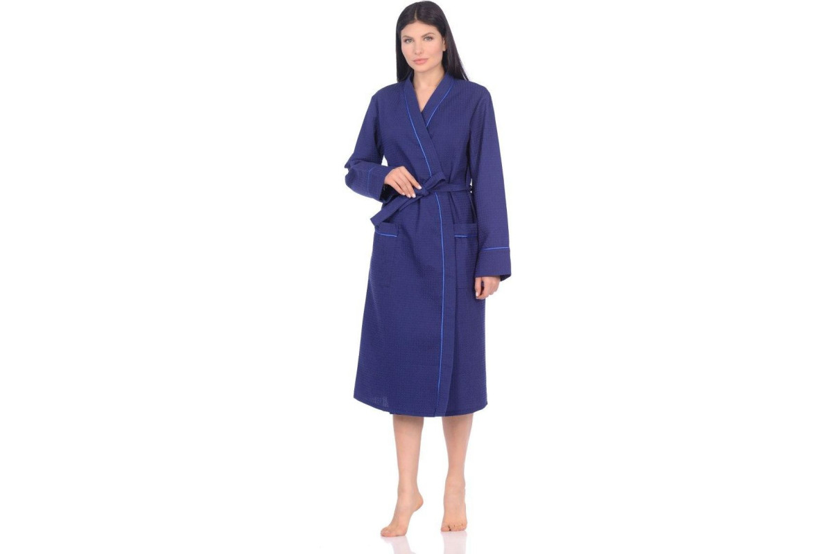 Легкий и стильный халат Home One выполнен из вафельного полотна, плотностью 250гр/м2. Это материал, состоящий из хлопчатобумажных нитей, без добавления синтетики. Халат гарантирует полную свободу, не сковывает движения, и, благодаря плотной ткани, порадует вас длительной ноской. Изделие отделано оригинальным контрастным кантом по воротниковой зоне, на рукавах и карманах. Халат отлично подходит для домашнего использования, обеспечивает комфорт, а ткань обладает тактильно приятной текстурой.