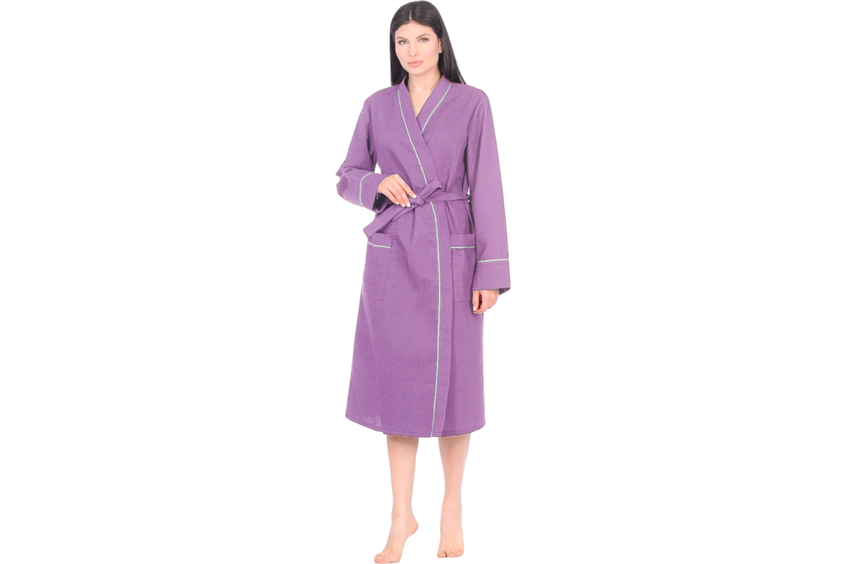 Легкий и стильный халат Home One выполнен из вафельного полотна, плотностью 250гр/м2. Это материал, состоящий из хлопчатобумажных нитей, без добавления синтетики. Халат гарантирует полную свободу, не сковывает движения, и, благодаря плотной ткани, порадует вас длительной ноской. Изделие отделано оригинальным контрастным кантом по воротниковой зоне, на рукавах и карманах. Халат отлично подходит для домашнего использования, обеспечивает комфорт, а ткань обладает тактильно приятной текстурой.