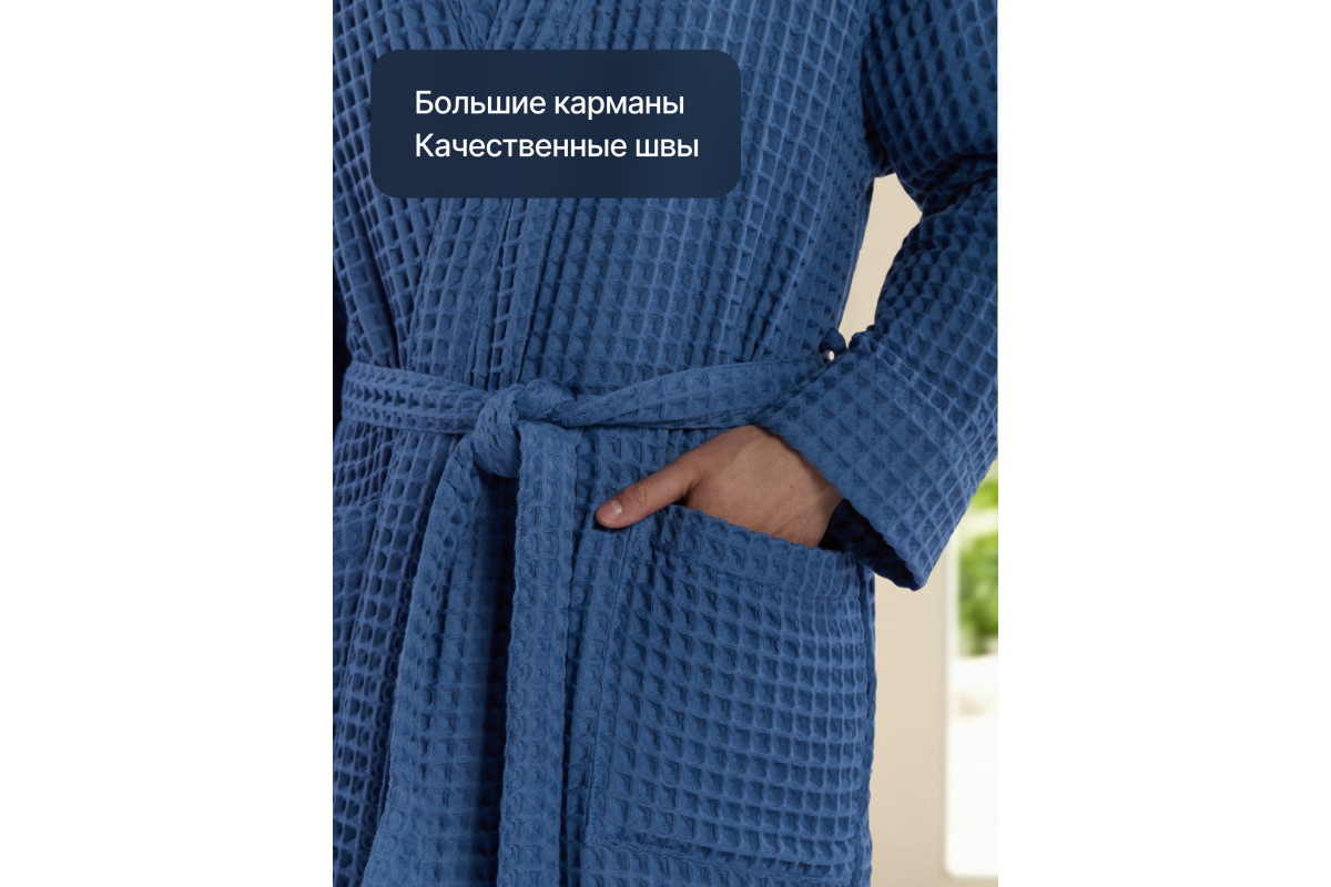 Модель выполнена в классическом стиле имеет длинный широкий рукав, два глубоких накладных кармана, пояс. Длина халата обеспечивает максимальное удобство и легкость при движении. Вафельный халат идеально подходит для домашнего использования, на даче, в бане и сауне. Прекрасно подходит для мужчин с любым типом фигуры. Изделие может стать отличным и полезным подарком для родных и близких. В целях идеальной посадки при повседневной эксплуатации изделия, халат отшивается с учетом усадки ткани после предварительной стирки.