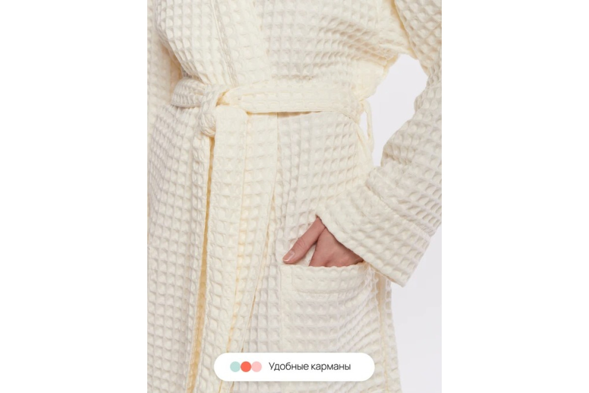 Модель выполнена в классическом стиле имеет длинный широкий рукав, два глубоких накладных кармана, пояс. Длина халата обеспечивает максимальное удобство и легкость при движении. Вафельный халат идеально подходит для домашнего использования, на даче, в бане и сауне. Прекрасно подходит для беременных и кормящих женщин. Изделие может стать отличным и полезным подарком для родных и близких. В целях идеальной посадки при повседневной эксплуатации изделия, халат отшивается с учетом усадки ткани после предварительной стирки.