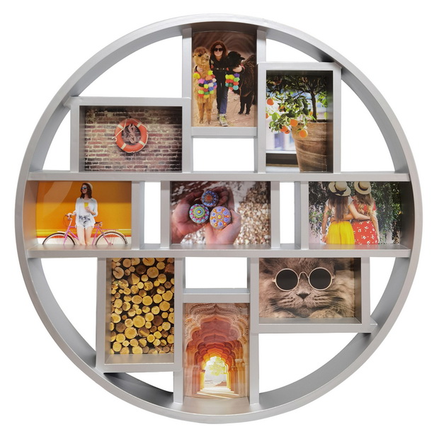 Фотопамка галерея Henzo Discus Gallery для 9 фотографий 10х15 см с пластиковым профилем - очень красивая рамка для коллажей, в которой 9 фоторамок помещены в круглую раму. Размер рамки 56x56x4,5см. Рамка оснащена шлифованным стеклом. Фотографии легко менять, поэтому вы можете регулярно обновлять галерею. В галереи сочетается альбомное и портретное размещение фотографий. Цвет серебряный.