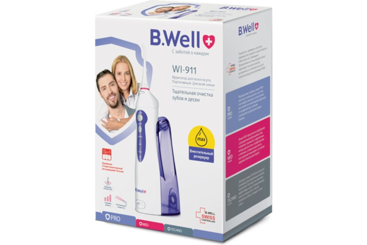 Ирригатор для полости рта B.Well WI-911 M с увеличенной емкостью для воды является модификацией базовой модели B.Well WI-911, единственное различие между которыми состоит в объеме резервуара для воды. Все остальные технические характеристики остаются неизменными.