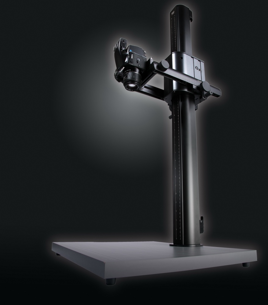 Колонна состоит из нескольких секций, представляющих собой специальные черные матовые анодированные алюминиевые трубки, со шкалой в см и дюймах. Держатель для камеры сделан из алюминия, и его положение регулируется по горизонтали в диапазоне примерно 16 см с помощью параллельных рельсов с механизмом реечной передачи. Возможно управление как правой, так и левой рукой, два стопорных винта предусмотрены для предотвращения случайного изменения настроенного положения. Крепёжную площадку для камеры можно устанавливать под углом ± 90°. Крепёжный винт даёт возможность горизонтальной регулировки. Высота регулируется моторизованным механизмом с помощью пульта д/у. Большое серое основание с антибликовой поверхностью с нанесённой сеткой и шкалой в см и дюймах. Можно регулировать высоту ножек. Спиртовой уровень.