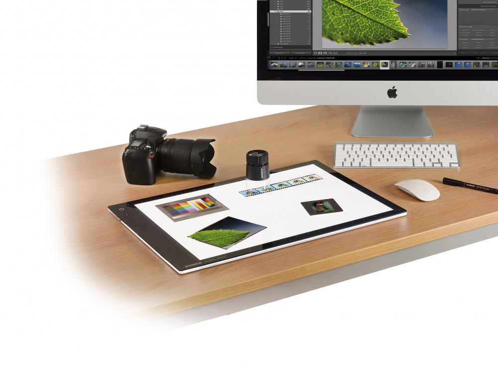Однородное освещение с точностью цвета для просмотра, сортировки и оцифровки слайдов или других прозрачных оригиналов.