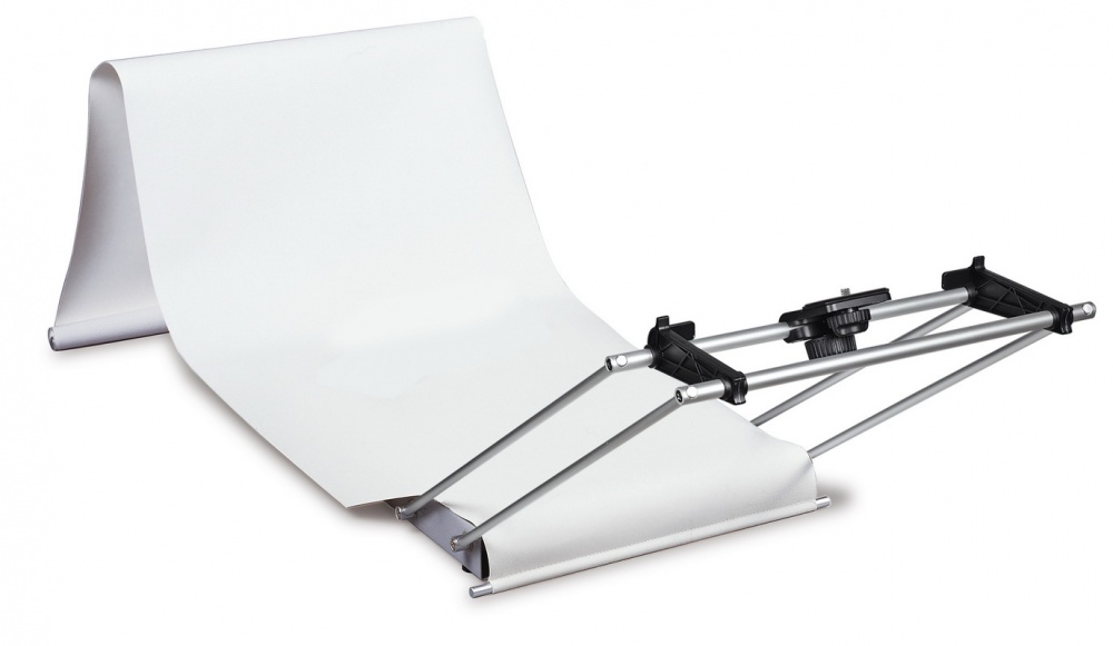 Столик раздвигается на расстояние до 30 см, фон можно устанавливать на разной высоте.