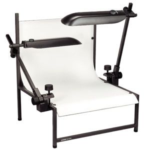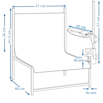 Столик для предметной съемки оснащен пропускающим свет белым акриловым фоном вогнутой формы. Необходимая площадь для установки на стол 50 x 50 см (20 x 20”.).