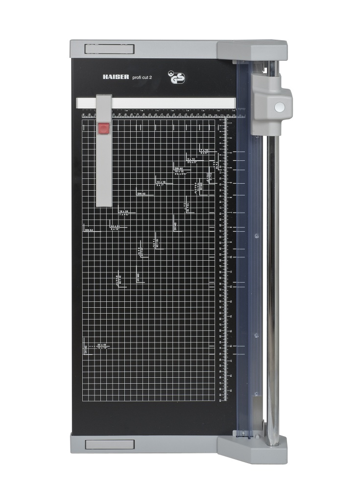 Прозрачная полоса фиксации бумаги. Ограничитель угла со шкалами в см и дюймах и съёмный магнитный задний упор. Основание резака со шкалами в см и дюймах и маркировки формата и угла. Возможность прикрепления к стене.